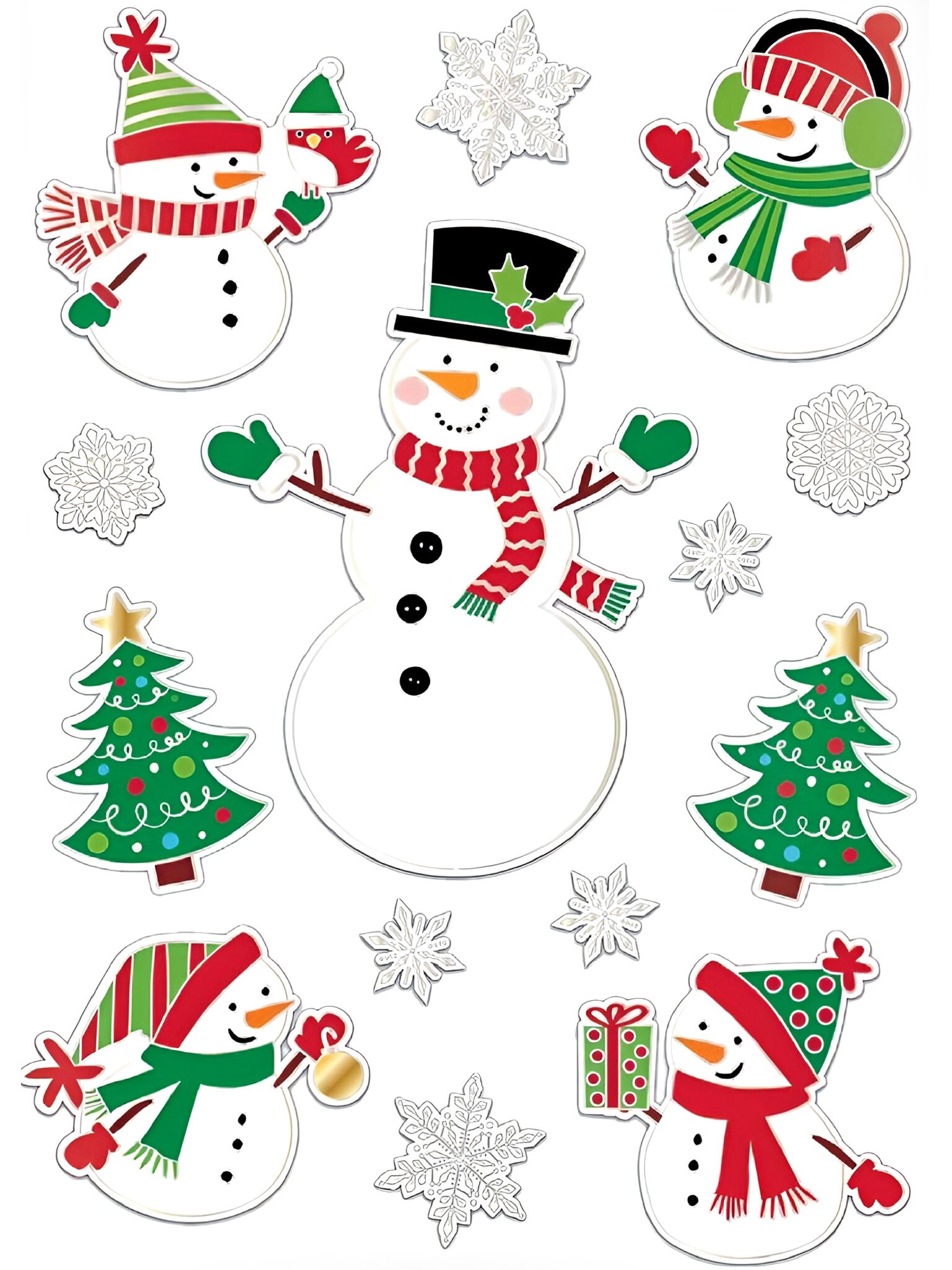 Новогодние наклейки "Снеговики" — идеальный способ украсить окна и создать праздничную атмосферу в вашем доме. Лист размером 43х30 см, из бумаги, включает в себя веселые образы снеговиков, рождественских елочек и снежинок. Простой в использовании набор из Германии легко наносится на стекло и придает уютную атмосферу новогодних праздников. Прекрасно подходит для украшения окон к Рождеству и Новому году, от него веет радостью и волшебством зимы.