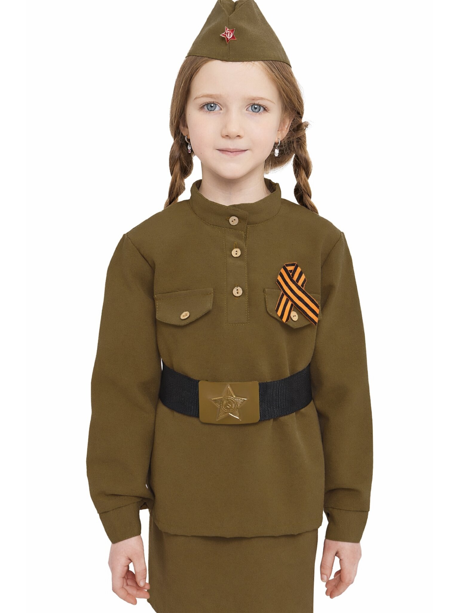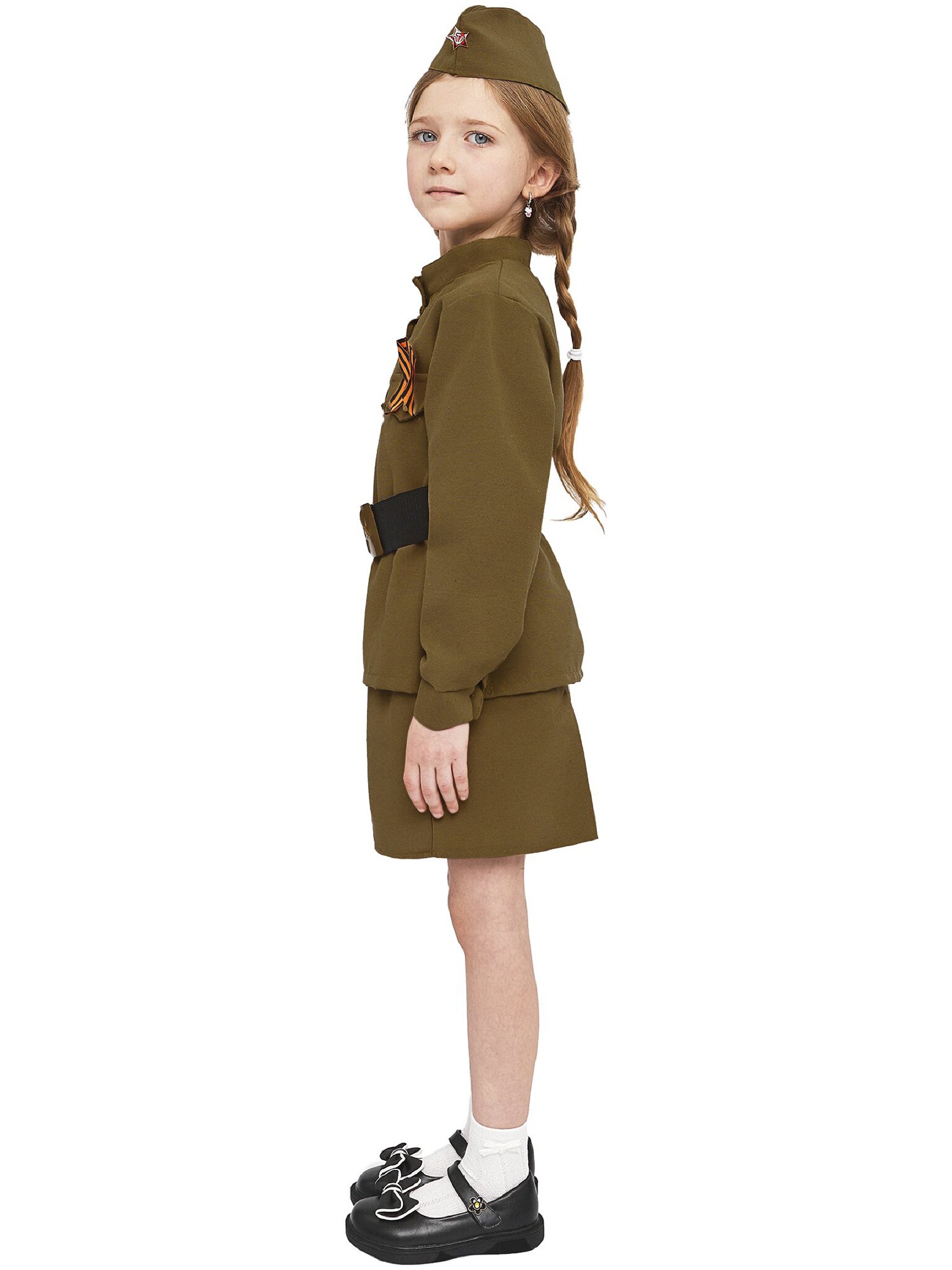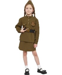 Состав костюма: гимнастерка, юбка, пилотка, пояс, Георгиевская ленточка