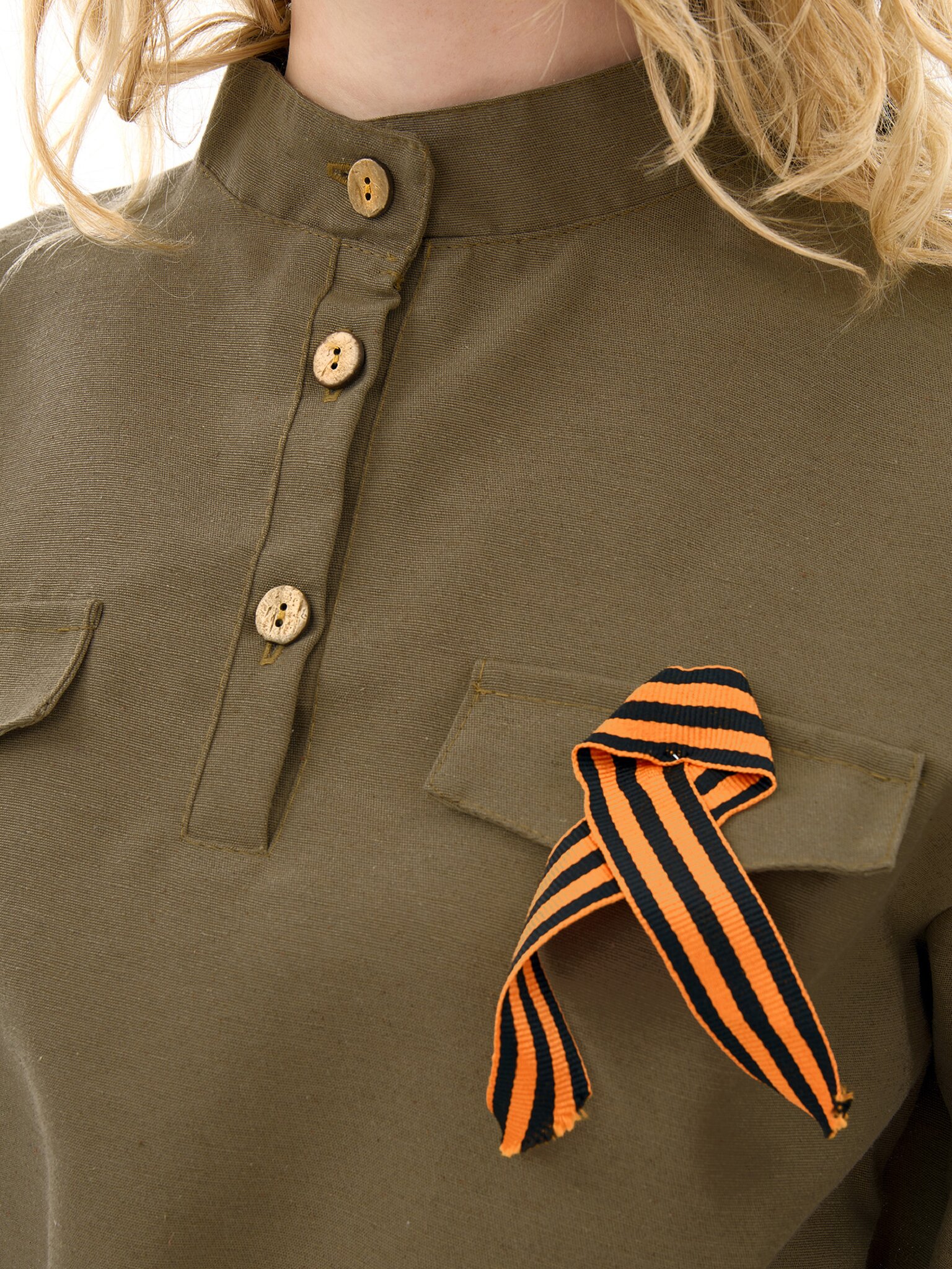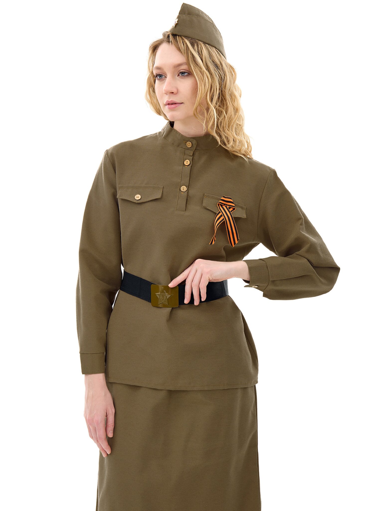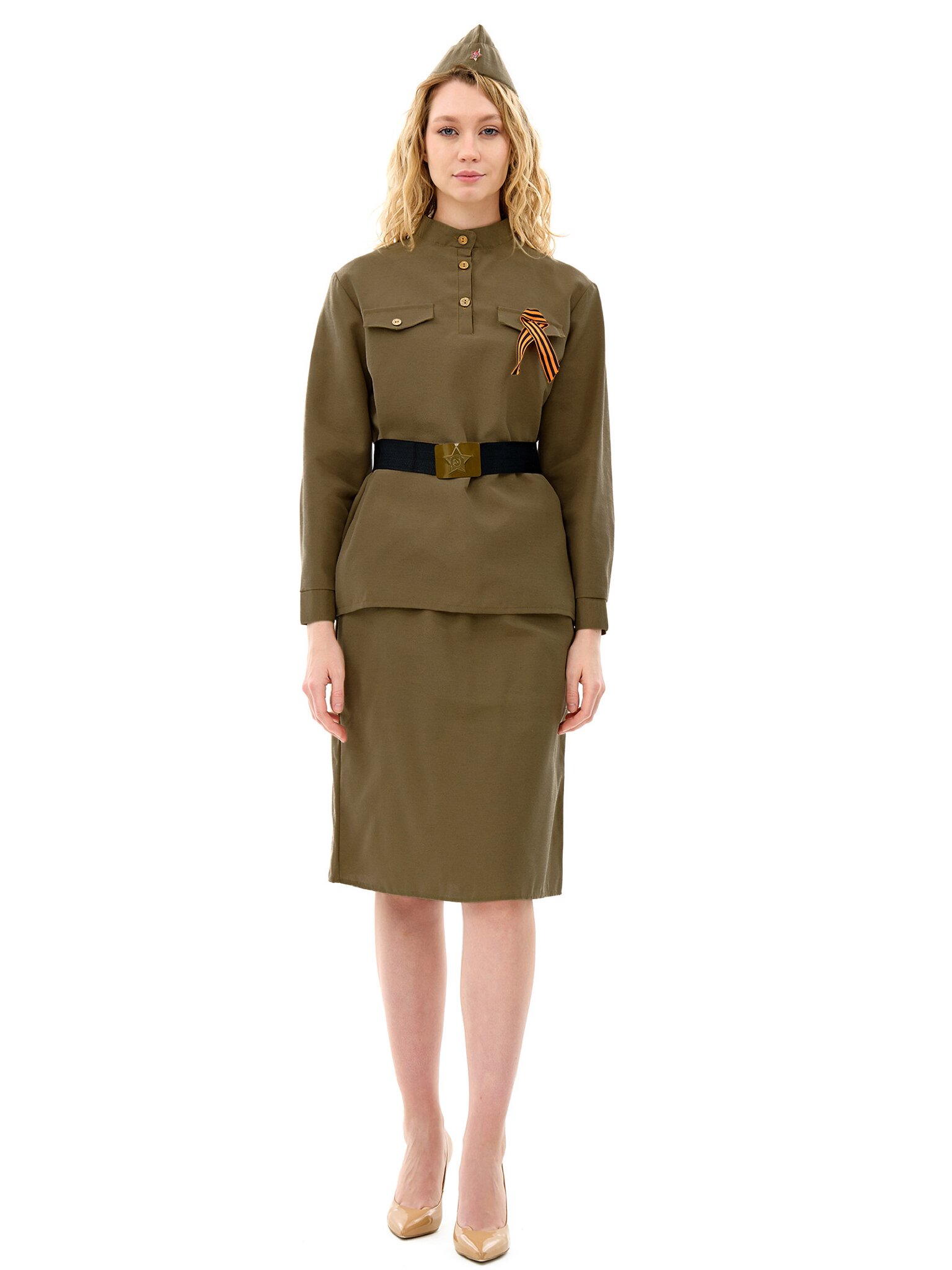 Состав костюма: юбка, гимнастерка, пилотка, ремень, георгиевская ленточка